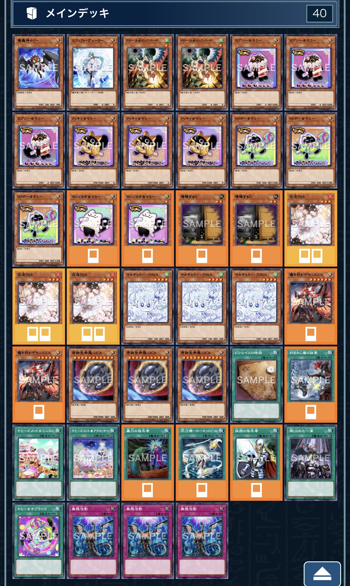 シンクロヤミー達によるサクリファイスエスケープで相手の除去をかわしつつ継戦出来るのがこのデッキの強み。